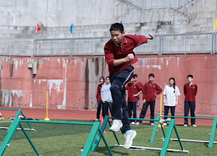 50米障礙接力作為運動會的老牌項目,深受孩子們的喜愛。腳步飛揚,傳遞力量,這是速度與合作的接力。咬緊牙關(guān),拼盡全力,為了團隊的榮譽,闊步前行,迎風(fēng)展翅。這不僅是一場激烈的角逐,更是一次突破自我的成長。