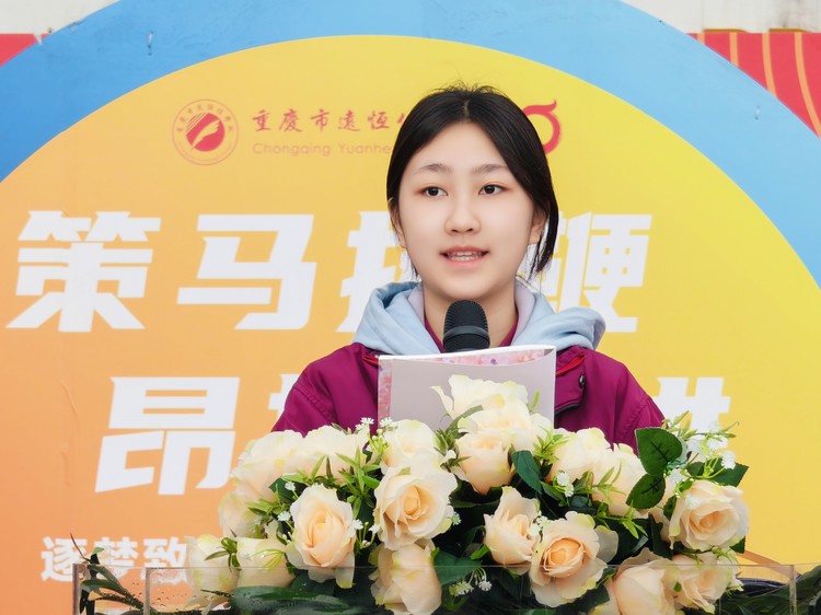 少年自有凌云志,學(xué)生代表譚皓月的心聲里,是以夢(mèng)為馬的熱忱,是不負(fù)韶華的鏗鏘。她以堅(jiān)定的聲音,訴說(shuō)著學(xué)子們對(duì)知識(shí)的渴望、對(duì)成長(zhǎng)的向往與對(duì)未來(lái)的憧憬。她的發(fā)言不僅是個(gè)人的心聲,更是全體學(xué)子以夢(mèng)為馬、砥礪前行的鏗鏘誓言。