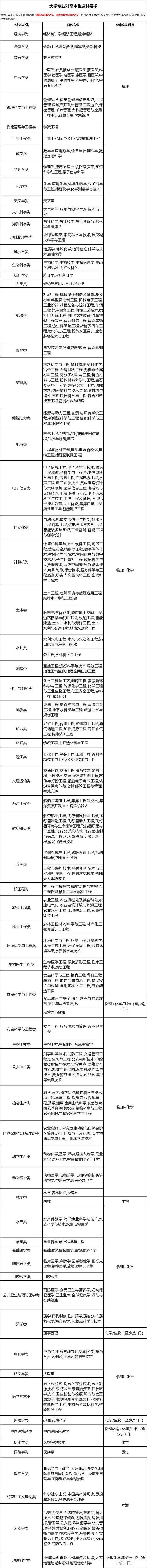 大多理工科由必須選考物理改為物理和化學(xué)同時(shí)選考。