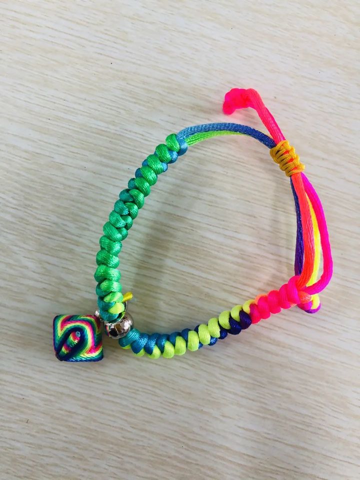 幼兒園家長助教進課堂,許淵博小朋友的媽媽帶著孩子們一起做五彩繩,寓意著祛除災害,迎福納吉。