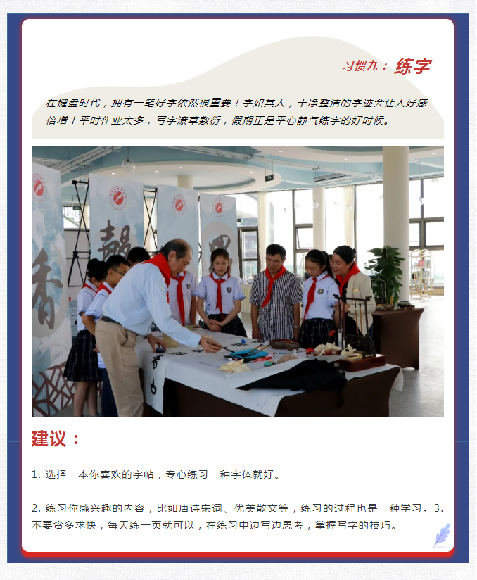 當(dāng)前位置:美好學(xué)校>校務(wù)公開> 美好學(xué)校|暑期敬言:好習(xí)慣受益一生