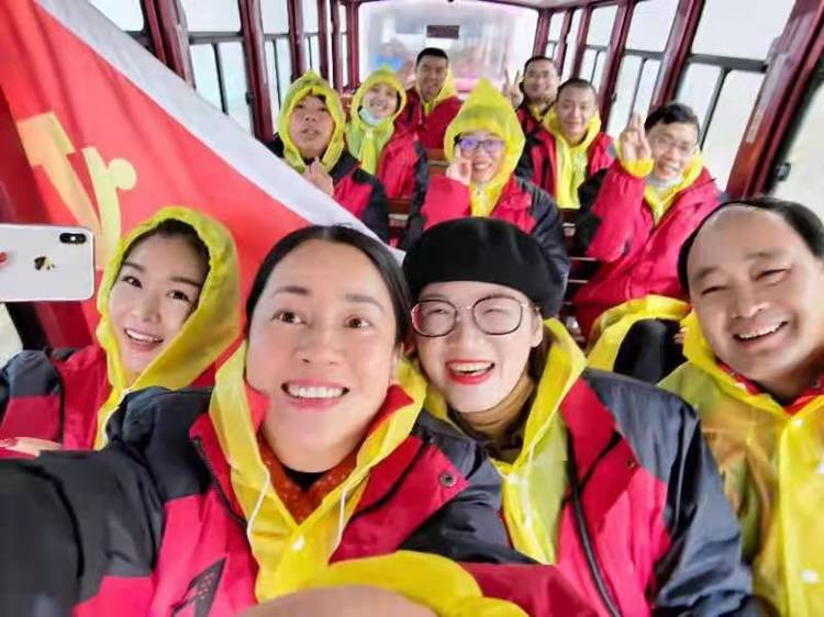 儀式感特強。啟動之際,黨支部書記主持小會,強調(diào)活動目的與意義,發(fā)揮民主,商議落實人員分工、時間安排等。漫長的車程里,《黨啊,親愛的媽媽》《沒有共產(chǎn)黨就沒有新中國》,一首首歌頌黨的歌曲從黨員們的心窩里飛出,唱響對黨的熱愛之情。