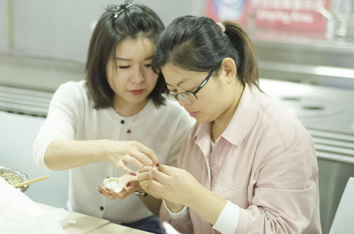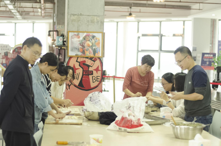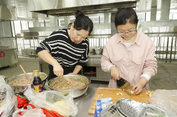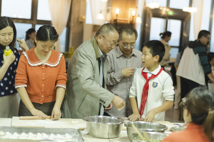 從食材的準(zhǔn)備、清洗、切、調(diào)配,從和面、揉面、搟皮兒、包餃子、煮餃子大家全程一起合作完成,其樂融融。