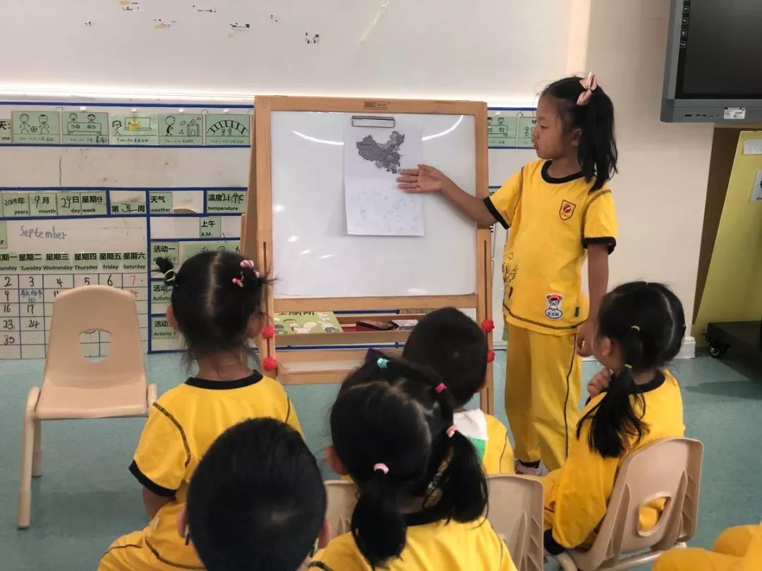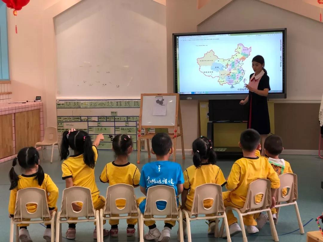 “我們的祖國有多大?你去過哪些地方?”,老師們帶領孩子認識中國地圖。從地圖上看,我們的祖國就是一只“大公雞”。