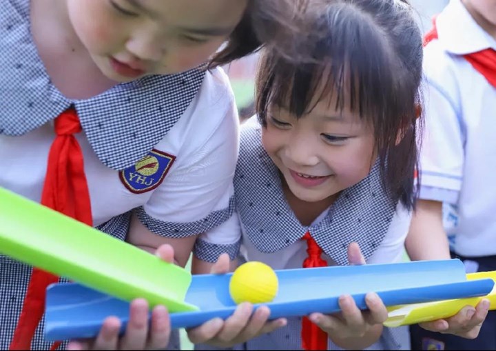 “珠行萬里”一雙雙小手筑成的軌道,承載著夢想的小球,奔跑吧夢想