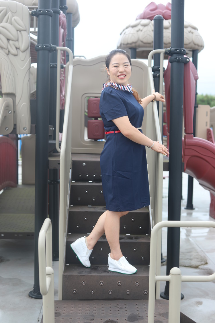 如果說微笑是一種福氣,那她就是就是個福星。她臉上總掛著微笑,仿佛天生沒有煩惱。幼兒園沒有開學的時候,學校食堂需要支援,她代表幼兒園挺身而出;幼兒園荒草叢生,塵土滿園,她穿著高跟鞋和大家一起拔草、洗地、翻田、種菜······