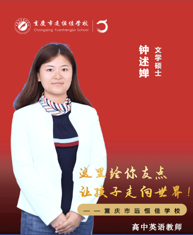 畢業(yè)于四川外國語大學(xué),文學(xué)碩士,曾任教于四川外國語大學(xué)外語教學(xué)部,負(fù)責(zé)非英語專業(yè)學(xué)生英語教學(xué),曾任六盤水市外國語學(xué)校初高中外語教育教學(xué),獲校優(yōu)質(zhì)課大賽一等獎(jiǎng)。有豐富的高中教學(xué)和班主任經(jīng)驗(yàn),2019年指導(dǎo)教師榮獲長壽區(qū)英語優(yōu)質(zhì)課大賽一等獎(jiǎng)。